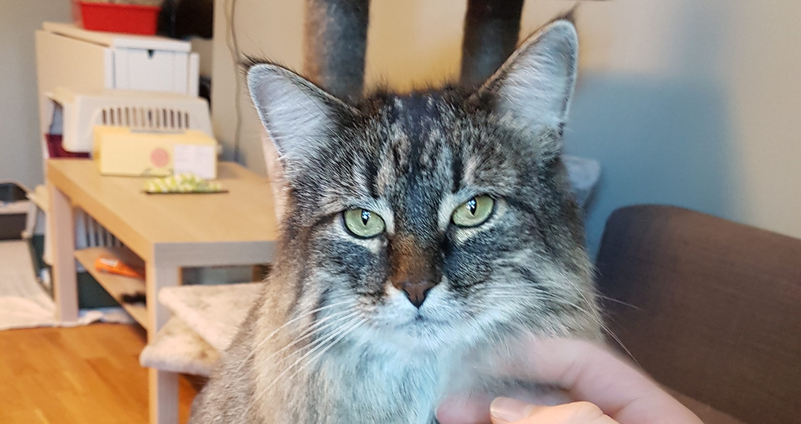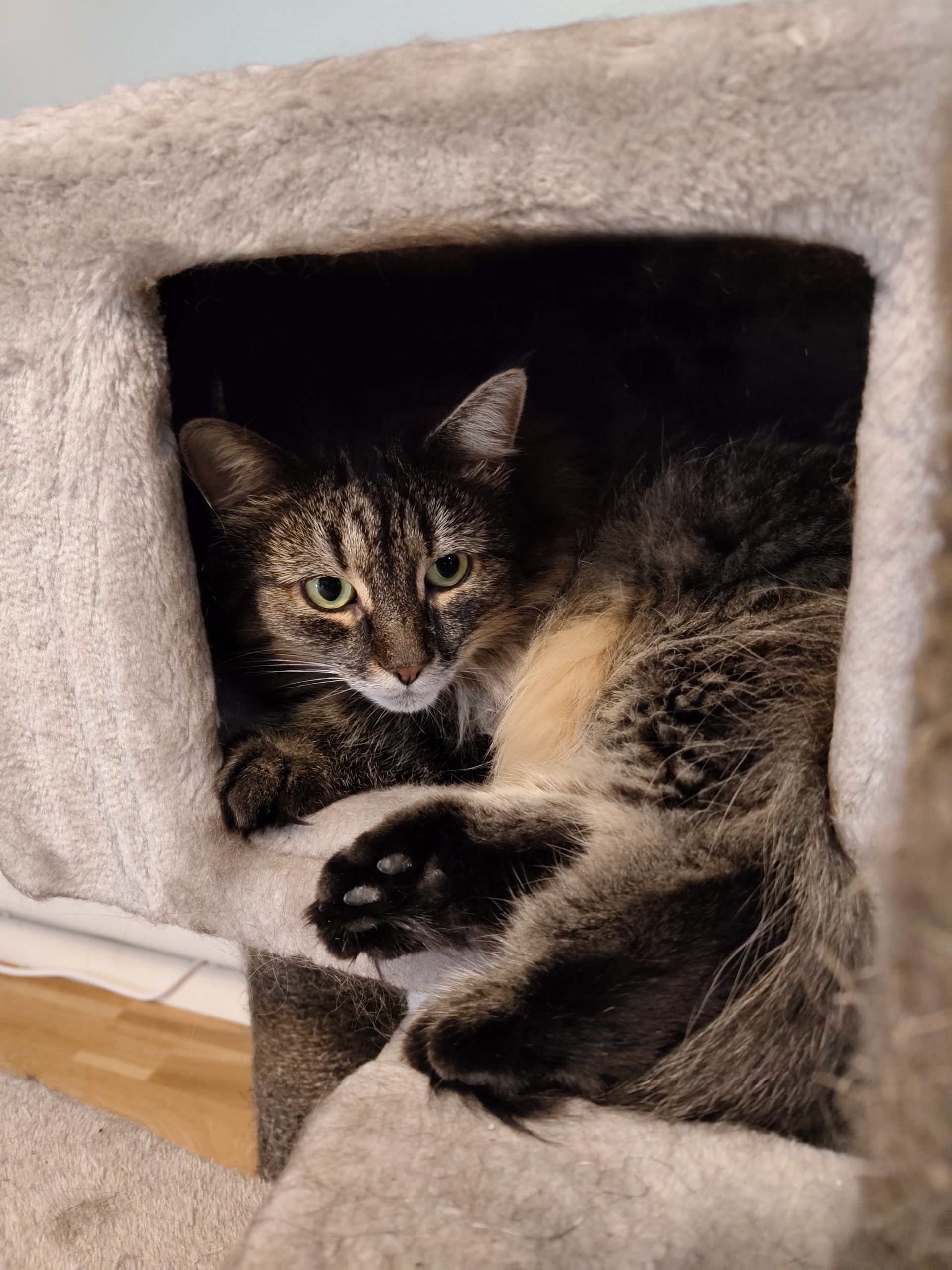 Hun har veldig fin tigerstripet pels og liker særlig å bli klødd under haka. Hun er nysgjerrig og liker å leke med diverse leker, både alene og med matfar.