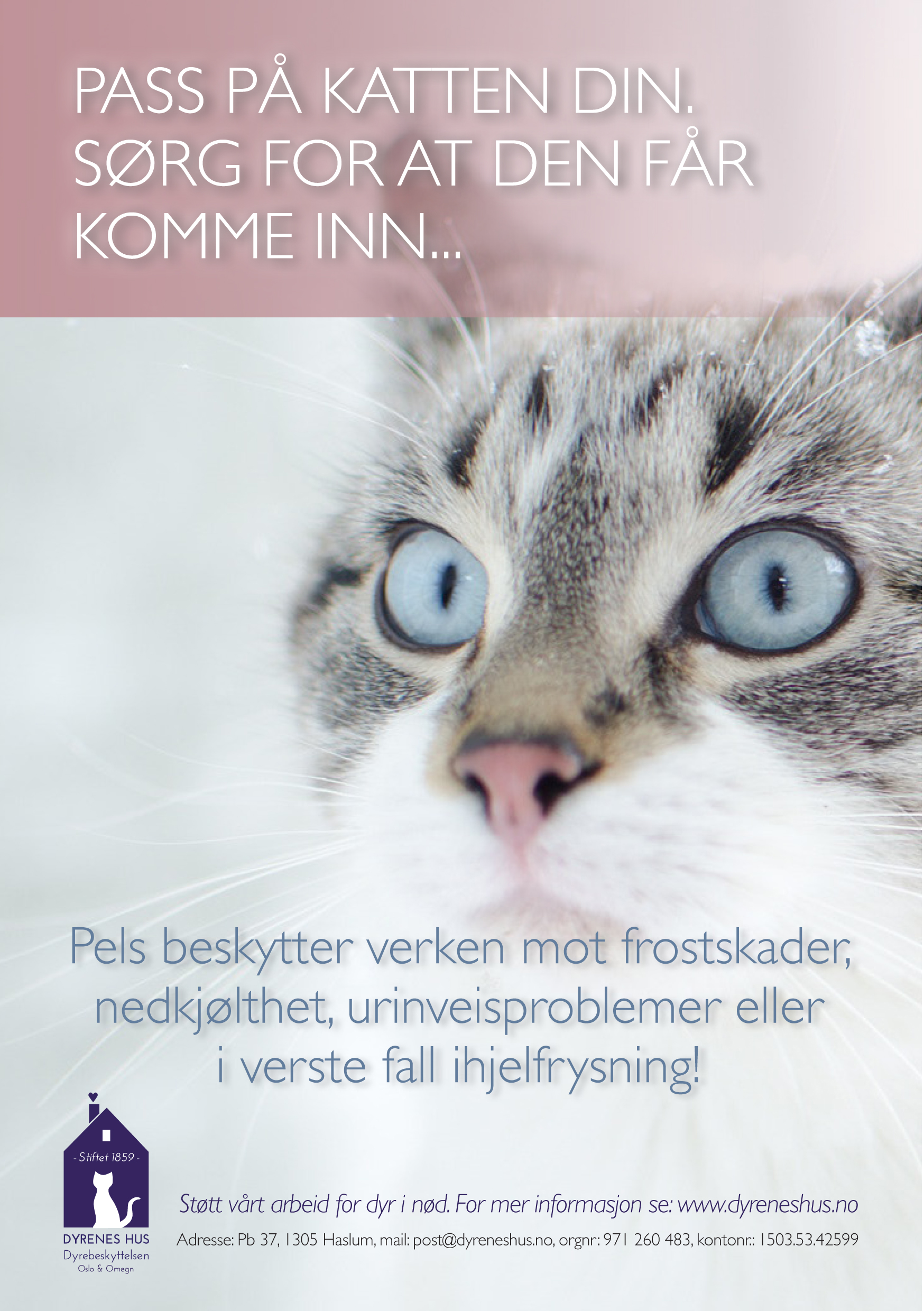 Del gjerne dette budskapet på din respektive facebookside og andre steder. Det kan aldri sies for ofte eller deles for mye. Katter klarer seg ikke alene ute i kulden, og med all den snøen som har kommet nå vil katten velge å bevege seg der det måkt. Oftest der hvor biler ferdes.