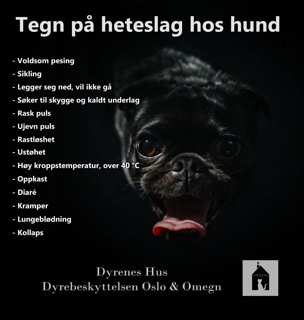 Det viktigste steget i behandlingen av heteslag er faktisk å gjenkjenne det. Hunder har ikke svettekjertler på kroppen slik som oss mennesker, bortsett fra noe under potene. Disse svettekjertlene fungerer dårlig til å bli kvitt varme.