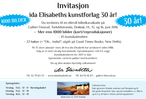 Stor jubileumsutstilling i Galleri Finsrud i Drøbak 14, 15 og 16.juni 2016.