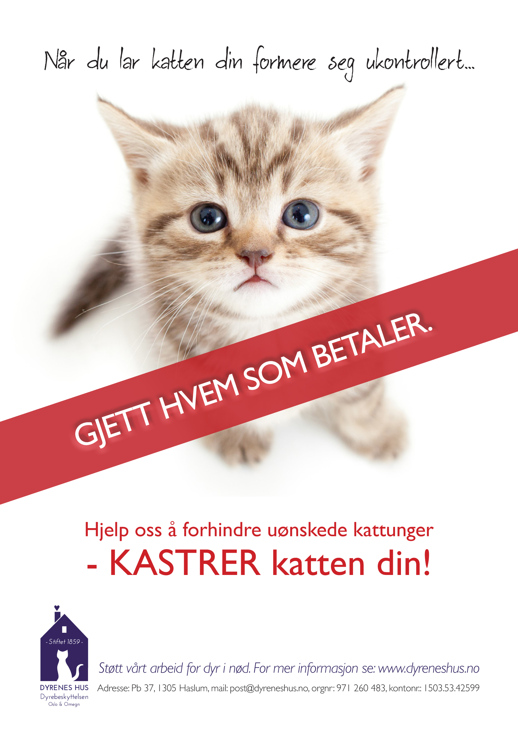 Det er nå rett før parringstiden blant katter, og det er viktig å få katten kastrert i tide for å forhindre nye dyretragedier med uønskede kattungekull. I februar og mars har mange veterinærer kastreringskampanjer, og tilbyr kastrering, id.merking og vaksinering til sterkt reduserte priser.