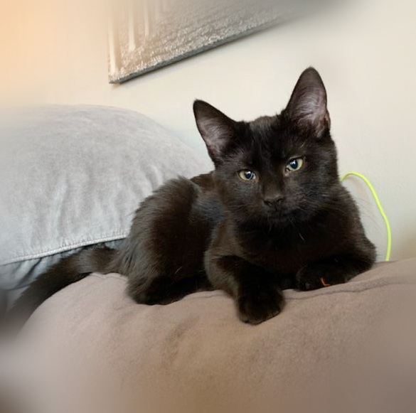 Nemi er 7 måneder gammel og er kjempeglad i lek. Hun er helt svart, elegant og litt klumsete når leken er i gang. Hun elsker å løpe etter fjærpinner og mus på snøre.